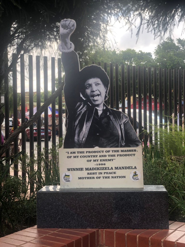 I felt a heaviness burrowing in the pit of my stomach when I saw that I would have to walk through the Non-Blanke entrance based on my ticket. Upon entering the museum, I was bombarded with a collage of passport books belonging to Black South Africans. I learned that Black South Africans were required to carry these passport books and present them upon request by the state police. Failure to comply with the police’s request could lead to severe punishment and brutality under the apartheid state. The Apartheid Museum documented life under apartheid in great detail, touching on themes of race, gender, and class. The life of Nelson Mandela also comprised a large part of the museum given his leadership in the African National Congress. I got to understand the resistance struggle against apartheid through key points in Mandela’s political career such as the Sharpeville Massacre and Rivonia trial. After visiting the Museum, we traveled to Mandela’s house in Soweto where his wife and children lived during his 27 year imprisonment. The Mandela family represented hope, resilience and black pride during the anti-apartheid movement and standing inside of their home was a heart warming experience.